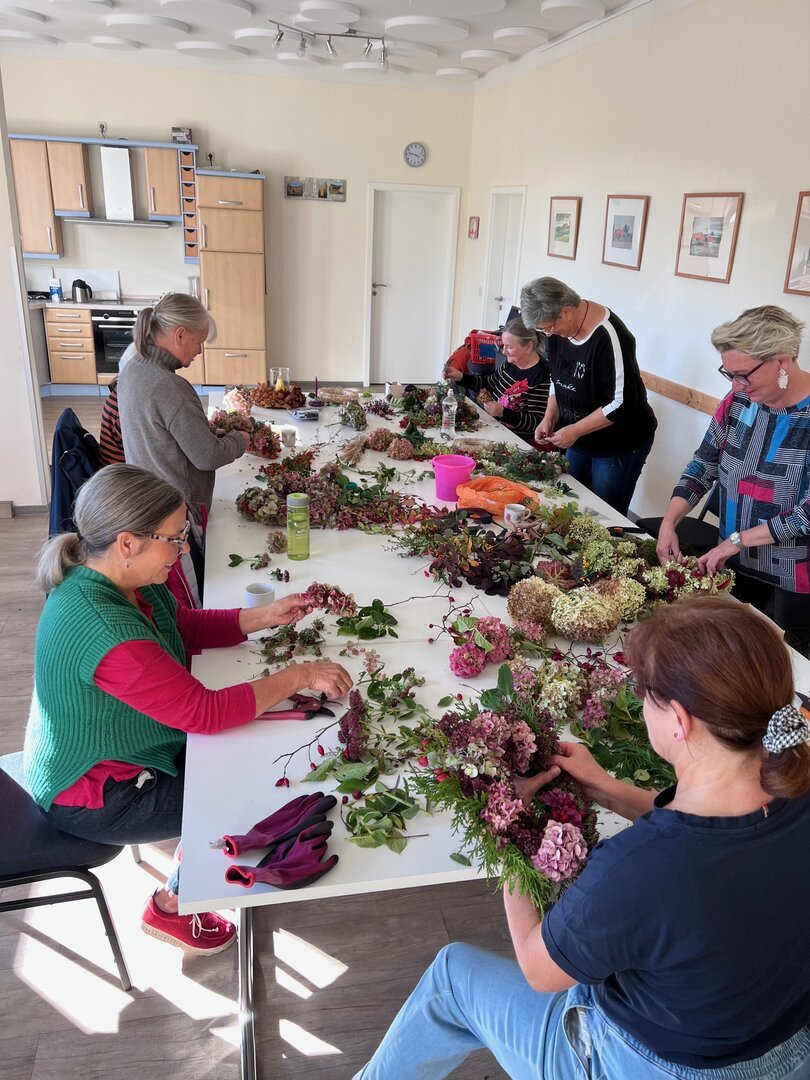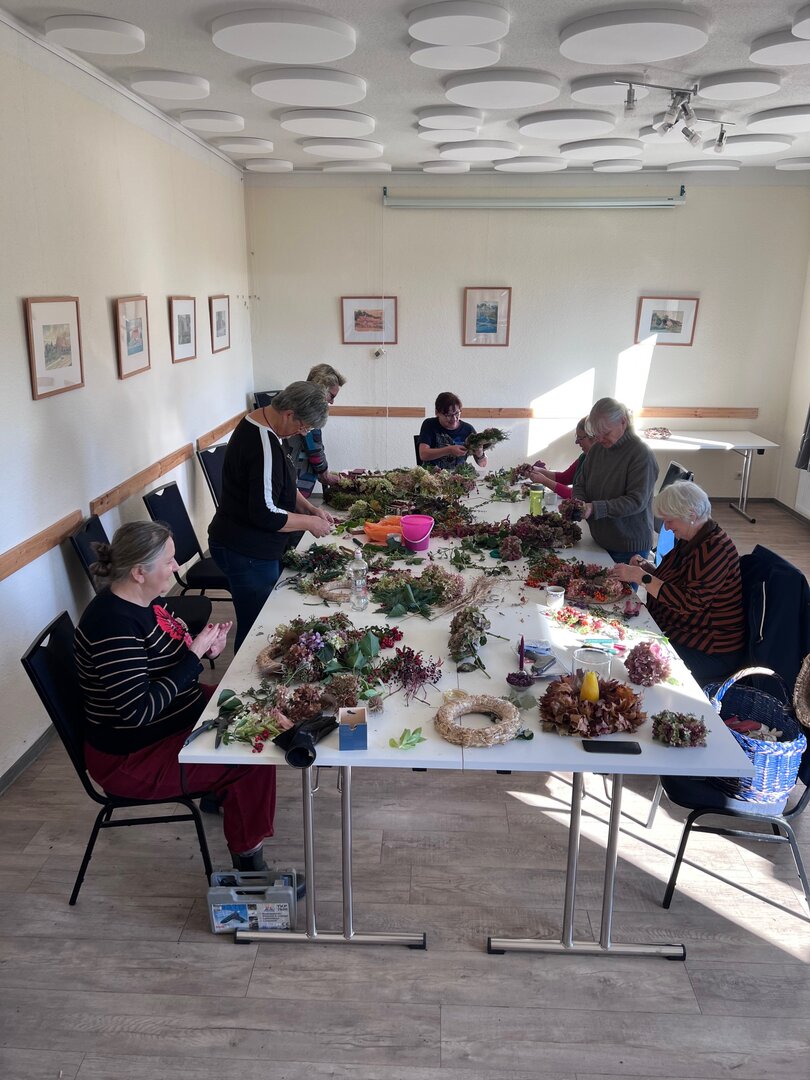Am 18.10. trafen sich sieben Frauen in unserer Bürgerbegegnungsstätte, um mit kreativem Engagement aus herbstlichen Naturprodukten dekorative Kränze zu gestalten.