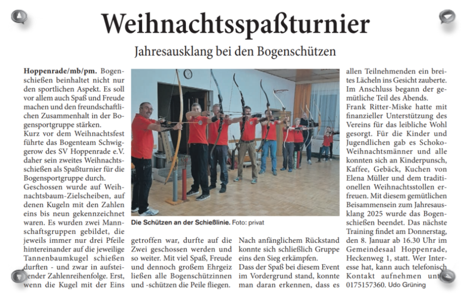 Parallel zu allen Veranstaltungen und in den Pausen konnten sich alle Vereinsmitglieder und auch Gäste am Bogenschießwettbewerb beteiligen. Unter fachkundiger Anleitung der Sportfreunde des Bogenschießteams wurde die beste Schützin, der beste Schütze und die beste Juniorschützin gesucht.