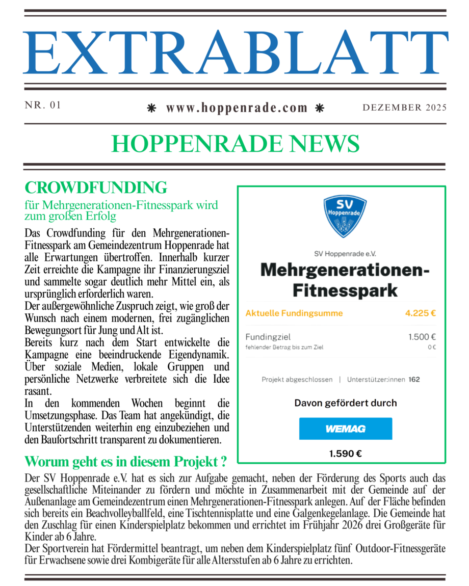 Jedenfalls wussten alle, was gemeint war und so traf man sich pünktlich um 10:00 Uhr an gleich zwei verschiedenen Orten der Gemeinde; an der Bürgerbegegnungsstätte in Hoppenrade und auf dem Sportplatz in Schwiggerow.